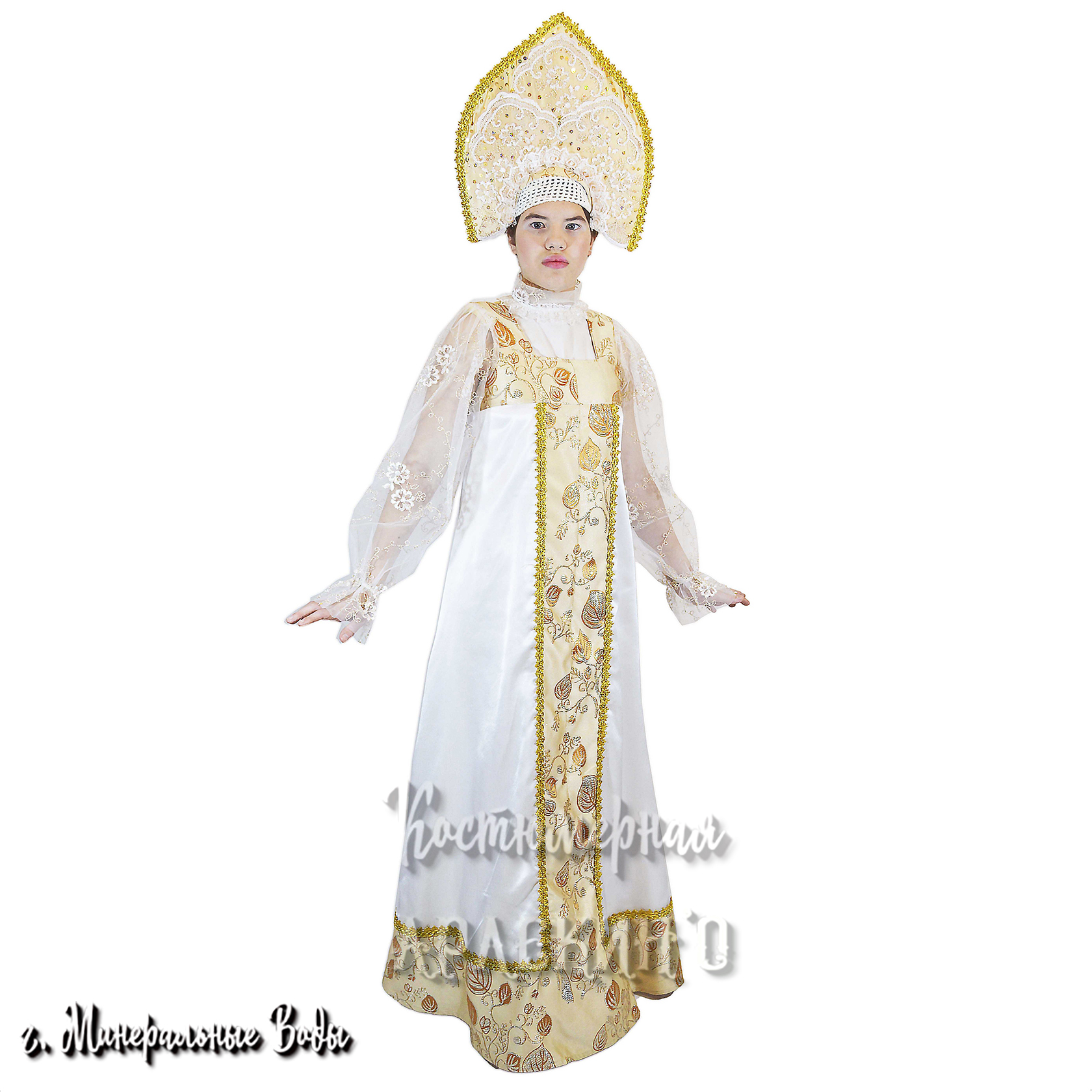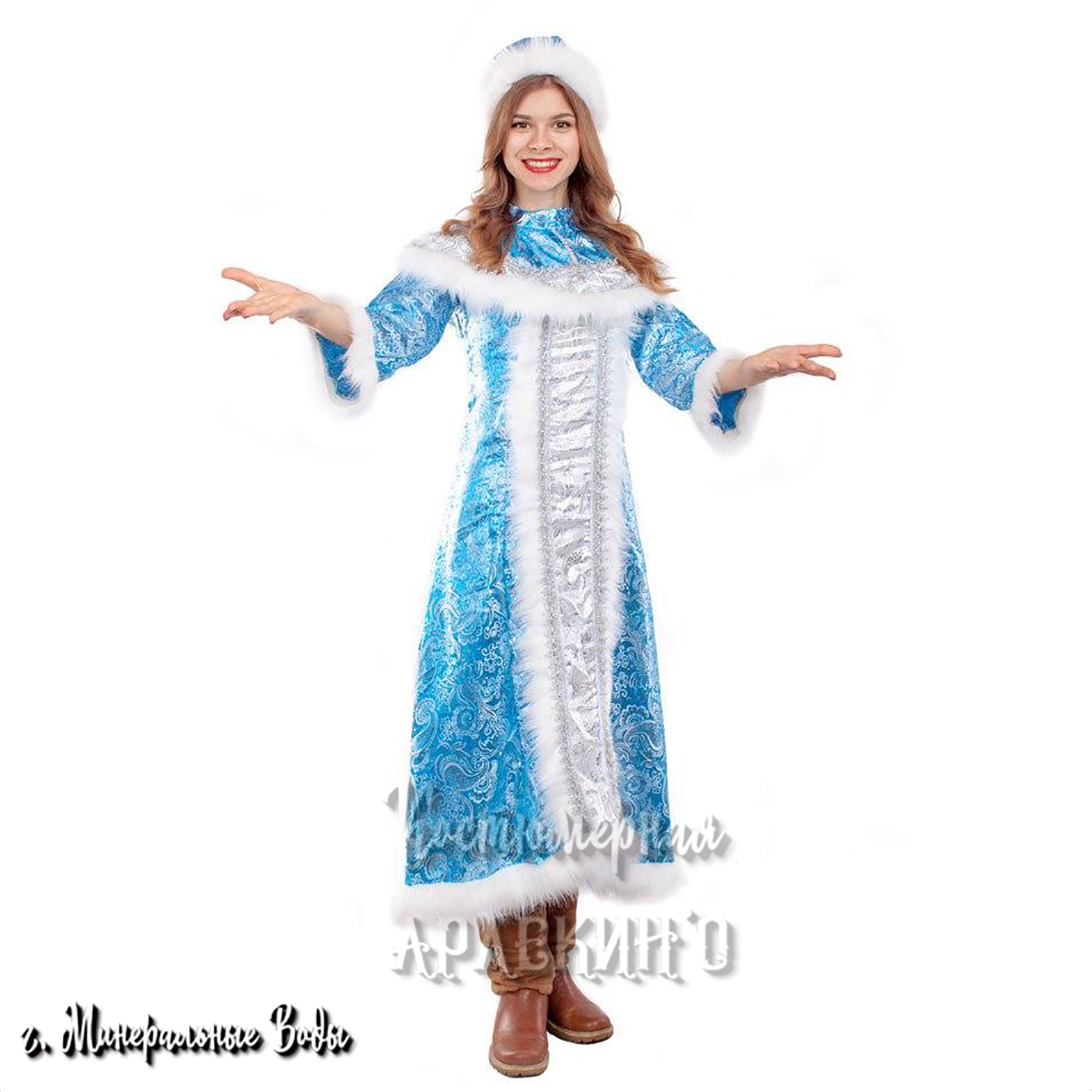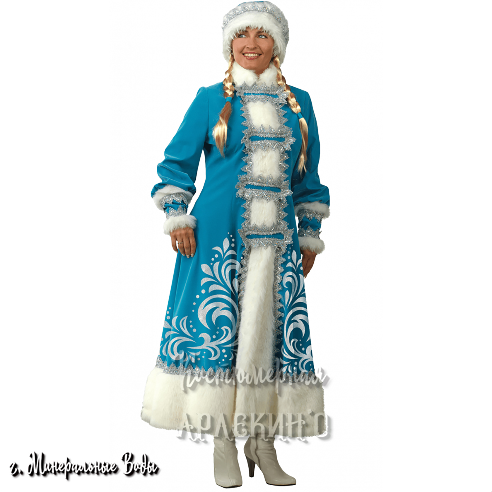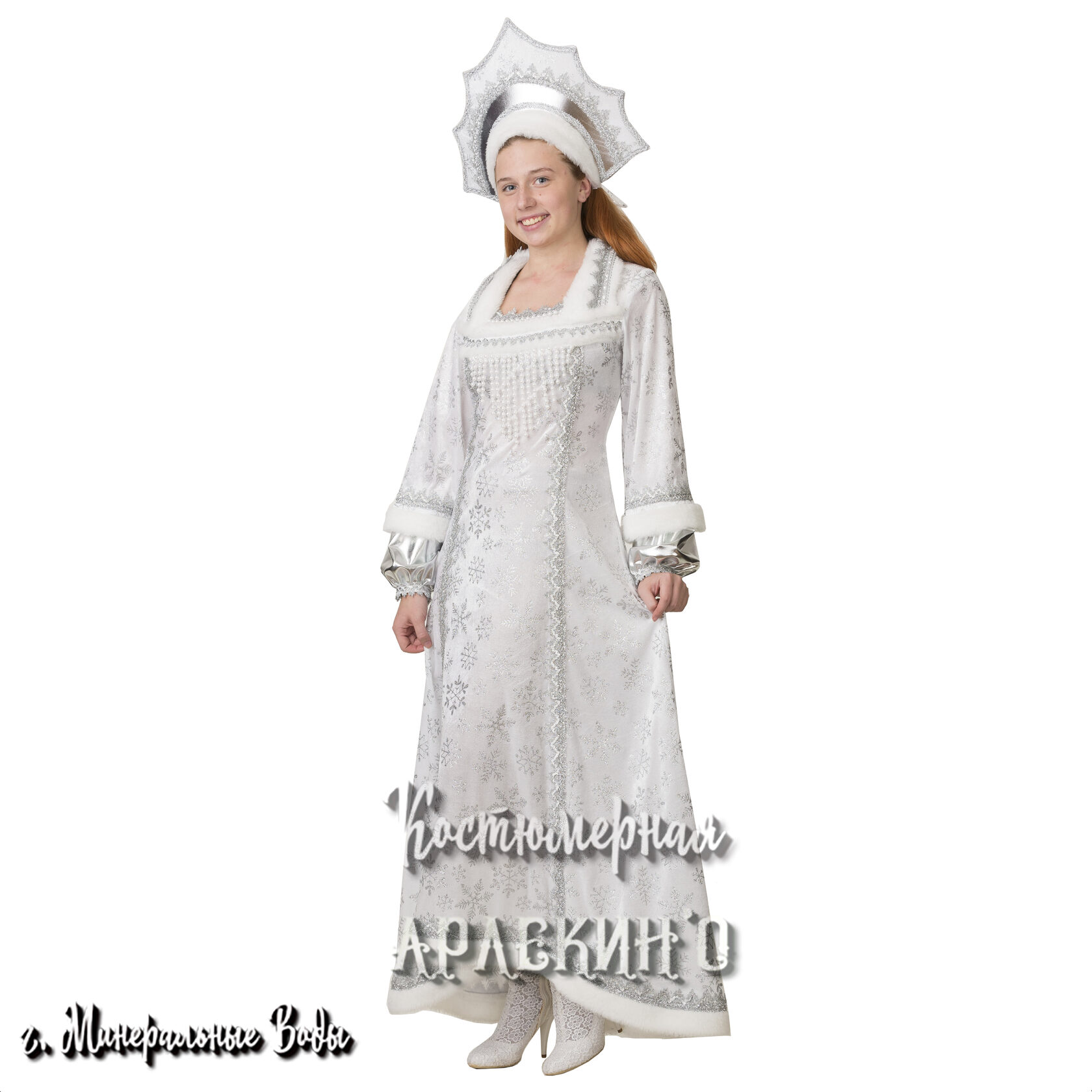 Красивый и удобный костюм для новогоднего утренника, проводов зимы или сказочного представления. Белоснежная плюшевая накидка с капюшоном украшена невероятно яркими снежинками из серебристых блёсток. Нижний край шубки и капюшона декорированы лёгким белым пухом. Свободный крой не сковывает движения и позволит вашему ребёнку активно петь, танцевать и участвовать в весёлых конкурсах.